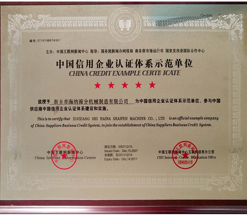 中國(guó)信用企業(yè)認(rèn)證體系示范單位